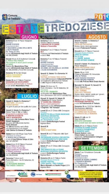 Un'Estate a Tredozio con tantissimi eventi. Da giugno a settembre si svolgeranno manifestazioni di tutti i tipi: sagre, feste, proiezioni di film, festival, mostre, concerti.
