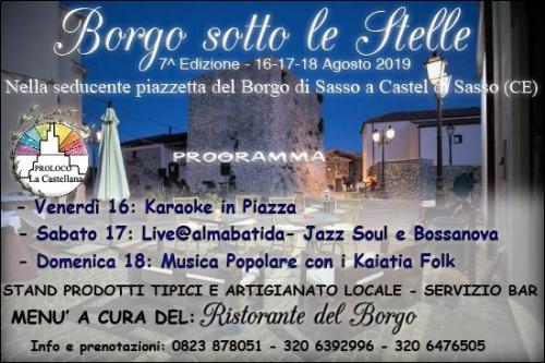 La manifestazione “Borgo sotto le Stelle” giunge alla sua settima edizione, è organizzata dalla Pro Loco La Castellana, in collaborazione con il Ristorante del Borgo che garantisce anche il servizio Bar.