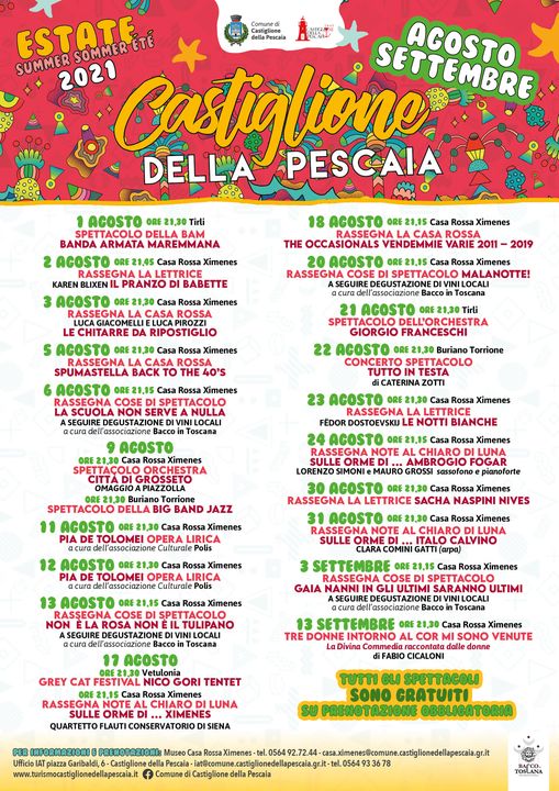 Diniego di responsabilià: le notizie riportate in questa pagina sono state fornite da Enti Pubblici e Privati e, organizzazione eventi e sagre, fiere. Suggeriamo di verificare date, orari e programmi che potrebbero variare, contattando le organizzazioni o visitando il sito ufficiale dell'evento.