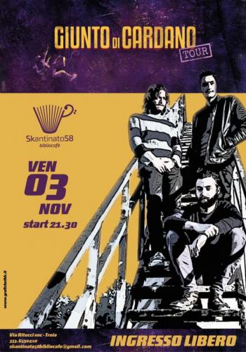 TROIA - Domani, Venerdì 3 novembre, torna la musica dal vivo allo Skantinato 58 . Stavolta si fa rock con i Giunto di Cardano, una band foggiana che sperimenta un alternative rock caratterizzato da distorsioni, riverberi e testi introspettivi.