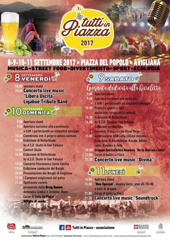 Tutti in Piazza ad Avigliana dall'8 all'11 settembre 2017.