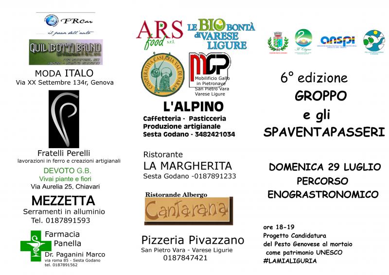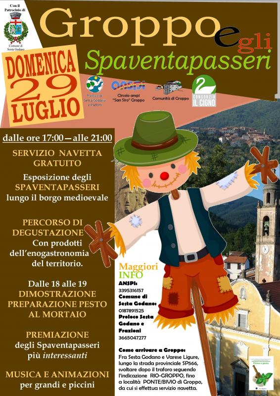In passato il benessere delle comunità della val di vara si fondava su un economia di tipo prettamente agricolo e sullo sfruttamento delle foreste del Monte Gottero, da cui veniva ricavato il legname per le imbarcazioni genovesi e cibo per il sostentamento della popolazione. In questo contesto rurale e precario, in cui una grandinata improvvisa poteva mettere a dura prova il sostentamento della comunità, lo spaventapasseri rappresentava un custode del campo, con funzione apotropaica per la protezione della produzione orticola. Ad oggi le cose sono cambiate, la produzione agricola, centrale per l'economia del passato, è diventata fonte secondaria di sostentamento, lasciando posto agli sviluppi turistico/commerciali dati dal settore terziario in continua espansione. Restano però le produzioni di nicchia, eccellenze del territorio ligure, produzioni biologiche in seno ad una logica slow di rispetto e tutela del territorio e del suo patrimonio culturale/tradizionale. E lo spaventapasseri? Resta nei simboli, oltre che nel campo, nonostante le trasformazioni della società e il progresso, a protezione delle piccole produzioni locali e della tradizione del mangiar bene rispettando se stessi e l'ambiente che ci circonda. Groppo e gli spaventapasseri non è un carnevale estivo, ma una manifestazione che pone, oggi, detti spaventapasseri, quali custodi ed a difesa delle tradizioni, dei riti, degli usi locali. La manifestazione rappresenta la volontà di celebrare un presidio della cultura e del senso di appartenenza al territorio, nell'ottica della sostenibilità ambientale, della tutela della qualità e della ricchezza delle produzioni locali, della valorizzazione dei beni immateriali.
