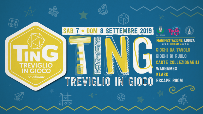 TinG 2019. Quinta edizione della manifestazione ludica dedicata ai giochi da tavolo, di ruolo, klask, escape room e wargame. Sabato 7 settembre dalle ore 9:30 alle 23:00 - Domenica 8 settembre dalle ore 9:30 alle ore 19:30. Ingresso aree gioco gratuito.