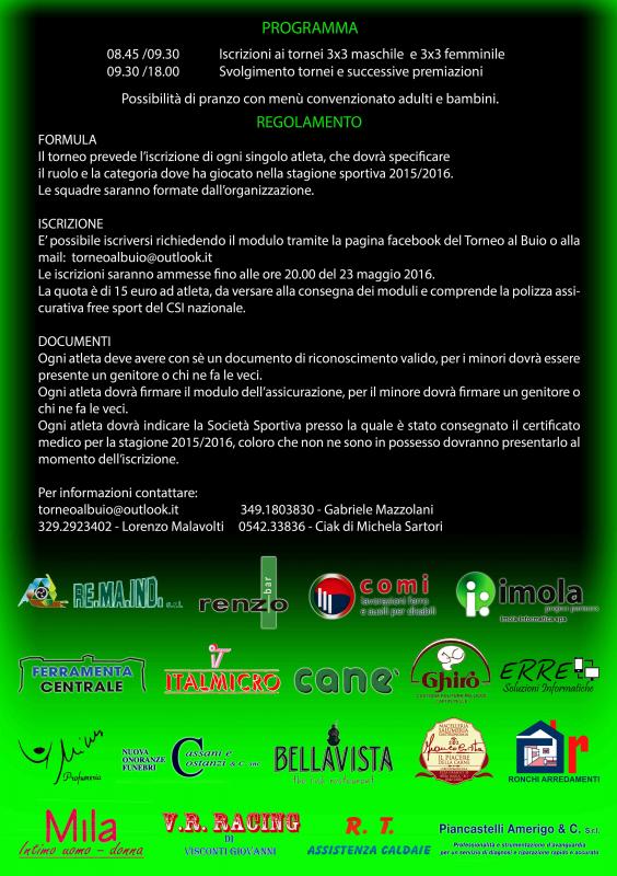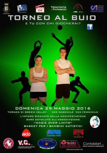 Il Motoclub della Polizia Municipale di Imola, Tabaccheria di Pontesanto di Malavolti Lorenzo, Ciak di Michela Sartori organizzano domenica 29 maggio 2016 nel campo sportivo Antistadio di via R. Galli di Imola (BO) il “Torneo al Buio - E tu, con chi giocherai?” , torneo di green volley 3x3 maschile e femminile .
