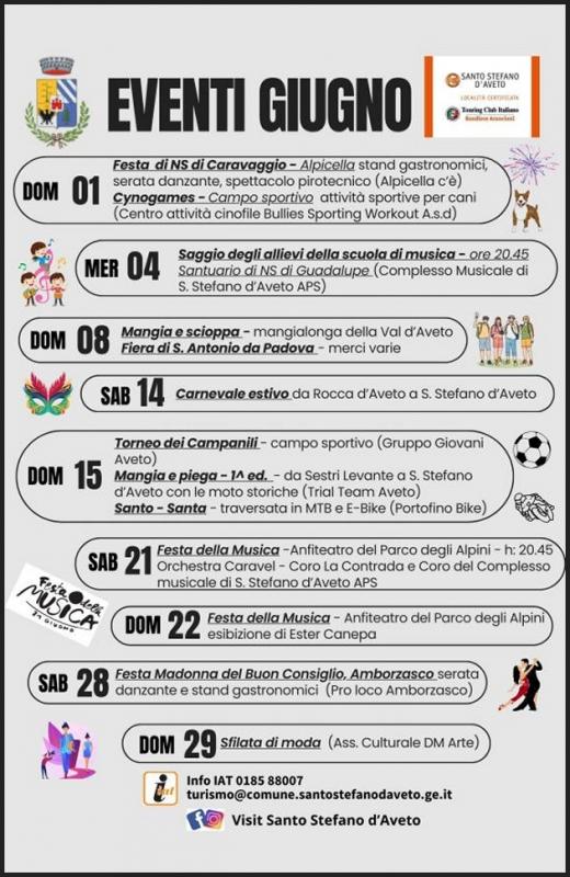 Anche per il mese di giugno, Santo Stefano d’Aveto propone un ricco calendario di eventi pensati per tutte le età: manifestazioni religiose, appuntamenti musicali, sagre gastronomiche, sport e intrattenimento per vivere a pieno l’inizio dell’estate in una delle località più suggestive dell’entroterra ligure.