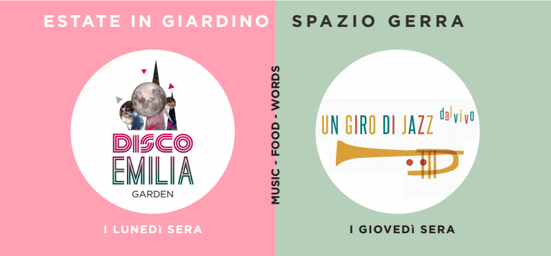 Lunedì 20 giugno inaugura l'estate in giardino a Spazio Gerra, con approfondimenti sul mondo della Disco il lunedì e i concerti della rassegna “Un giro di Jazz” il giovedì.