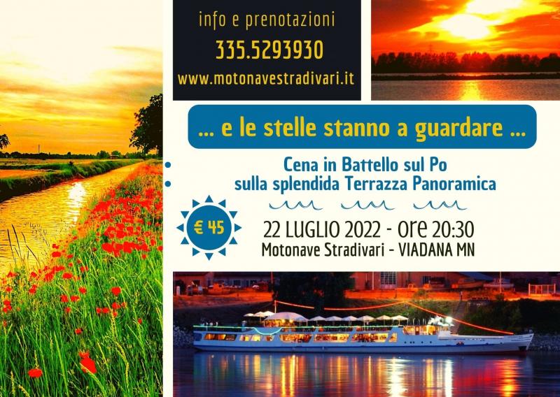 Cena a barca ferma sulla splendida terrazza panoramica della Motonave Stradivari “Ponte Sole Luna” per ammirare un meraviglioso cielo stellato da una posizione privilegiatae degustare le proposte estive della nostra Chef di Bordo