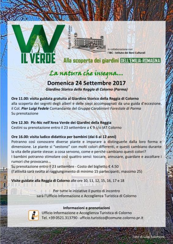 Ore 11.00: visita guidata gratuita al Giardino Storico della Reggia di Colorno alla scoperta dei segreti degli alberi e delle siepi accompagnati da una guida d’eccezione, il Col. Pier Luigi Fedele Comandante del Gruppo Carabinieri Forestale di Parma