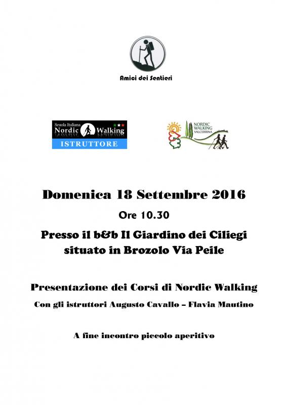 Con l’arrivo di settembre ricominciano le attività del Nordic Walking Valcerrina, in particolare sabato 17 e domenica 18 settembre collaboreremo con gli amici dei sentieri di Brozolo con le seguenti iniziative: