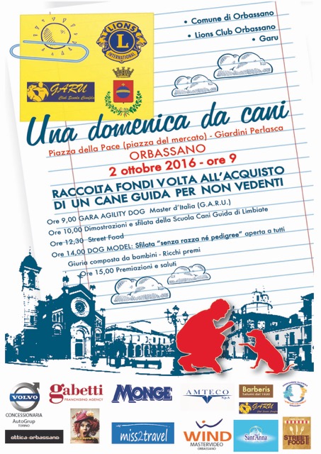 La manifestazione canina "Una domenica da cani" a cura del Lions Club di Orbassano si svolgerà domenica 2 ottobre dalle ore 9 alle 16 presso l'area verde attigua a piazza della Pace.