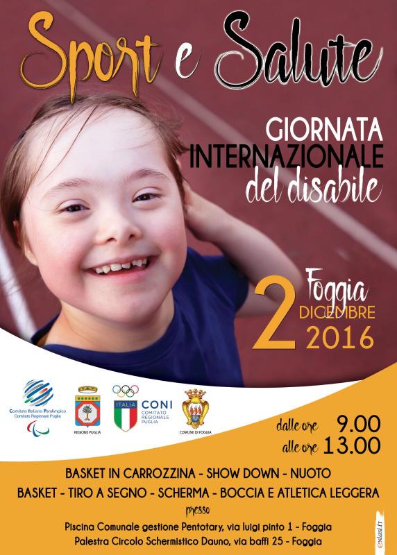 Tutto questo converge nella “Giornata internazionale del disabile” che si svolgerà a Foggia venerdì 2 dicembre, dalle 9.00 alle 13.00, presso la Palestra del Circolo Schermistico Dauno e la Piscina Comunale (in via L. Pinto 1) durante la quale, come ha spiegato Floriana De Vivo, delegato regionale FISDIR, i ragazzi delle scuole avranno la possibilità di fare un percorso sportivo attraverso le seguenti discipline: basket in carrozzina, show down, nuoto, basket, tiro a segno, scherma, boccia e atletica leggera.