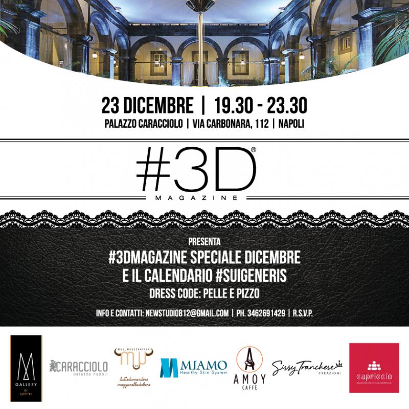 A meno di due anni dalla sua fondazione, #3D Magazine - il free press campano distribuito a Napoli, Roma e Milano ed edito e diretto da due donne, rispettivamente Palma Sopito e Manuela Giuliano, realizza e presenta il Numero speciale fotografico di Dicembre e il Calendario #SuiGeneris 2017.