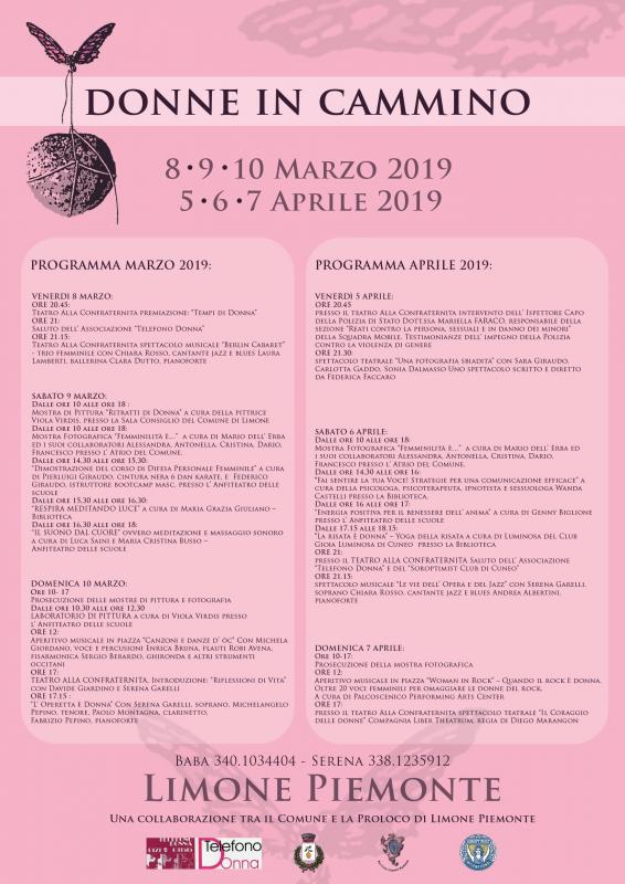 “Donne in cammino nasce dall'esperienza positiva delle due precedenti edizioni di “Limone in Rosa” - spiega il vicesindaco di Limone Vanna Vellone -, mantenendo l'intento di promuovere una campagna di sensibilizzazione sul tema della violenza contro le donne, una vera piaga sociale che coinvolge l'intero territorio nazionale”.