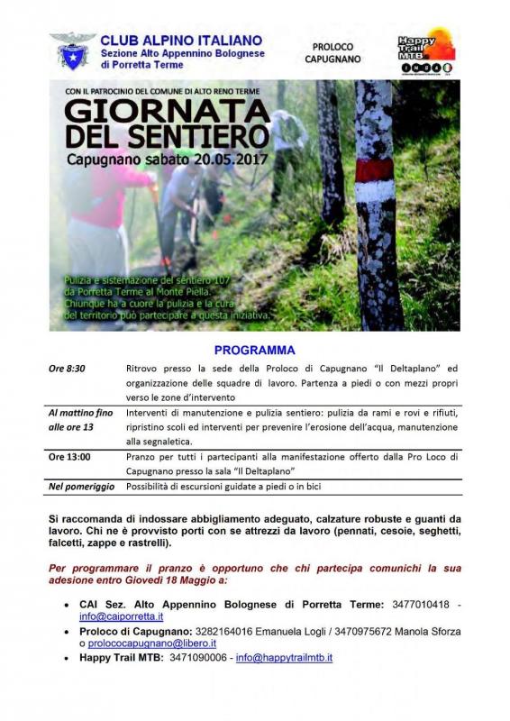 A Capugnano sabato 20 maggio si svolgerà la Giornata del Sentiero, iniziativa patrocinata dal Comune di Alto Reno Terme.