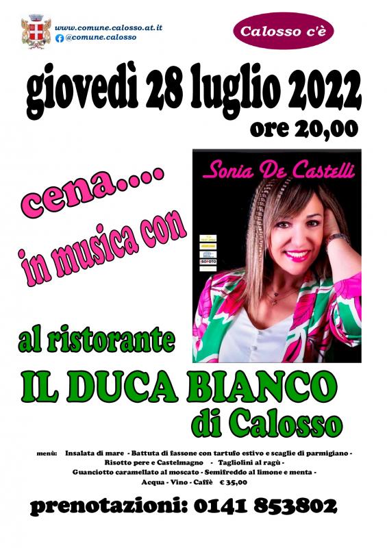 Si inizia giovedì 28 luglio con la “Cena un musica” presso il ristorante Il Duca Bianco: ad animare la serata Sonia De Castelli.