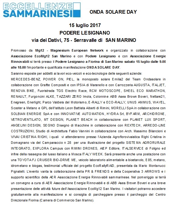 Sabato 15 Luglio 2017 - dalle ore 09:00 alle ore 18:00
