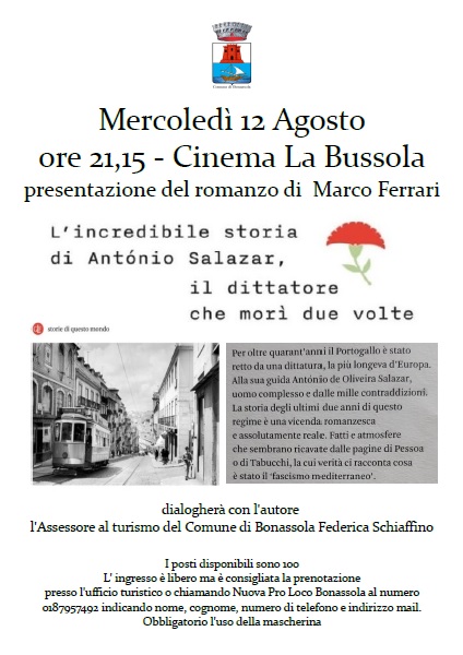 Si inizia con la presentazione del romanzo di Marco Ferrari "L'incredibile storia di Antonio Salazar, il dittatore che morì due volte", nel cinema La Bussola con ingresso libero. Dialogherà con l'autore l'assesore al turismo Federica Schiaffino.