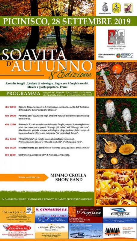 A Picinisco in provincia di Frosinone si svolge nella giornata di Sabato 28 Settembre 2019 la 8a edizione di Soavità d'Autunno.
