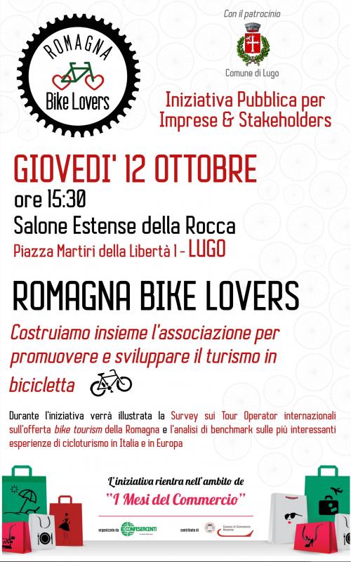Giovedì 12 ottobre dalle ore 15:30, presso il Salone Estense della Rocca di Lugo (Piazza Martiri della Libertà n°1), saranno protagonisti il cicloturismo e le sue prospettive economiche con l’iniziativa “ROMAGNA BIKE LOVERS: Costruiamo insieme l'associazione per promuovere e sviluppare il turismo in bicicletta”.