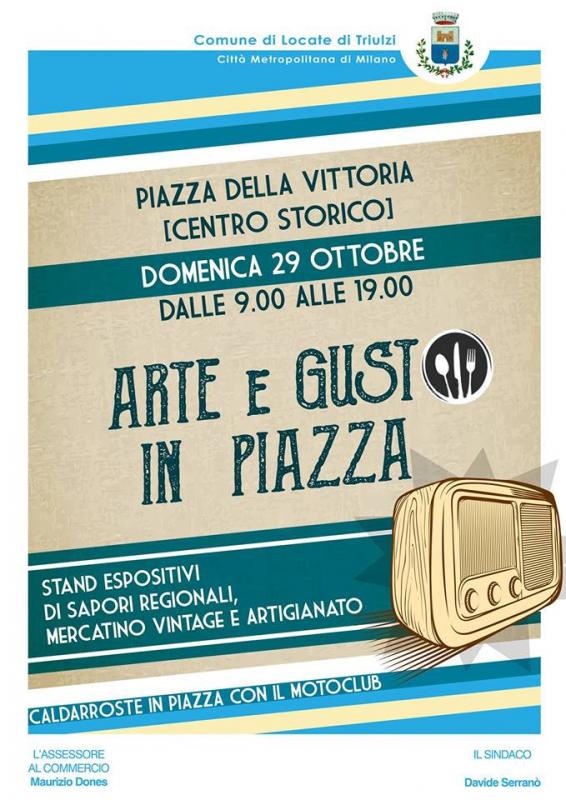 DOMENICA 29 OTTOBRE 2017 - Ci ritroviamo in Locate Trulzi, Piazza della Vittoria con "ARTE e GUSTO in PIAZZA" dalle 9:00 alle 19:00 Sapori Regionali, Food, Hobby, Artigianato, Antiquariato,Pittori, Collezionismo, Caldarroste con il MOTOCLUB