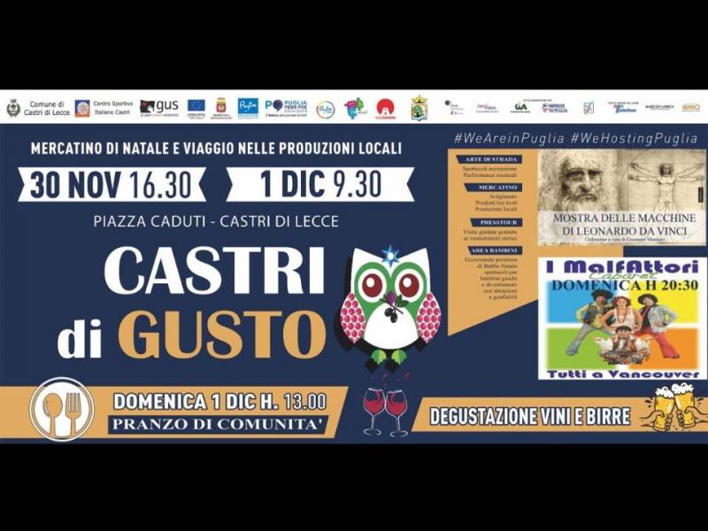 La quarta edizione di Castri di Gusto - viaggio nelle produzioni locali - che si terrà a Castri di Lecce Sabato 30 novembre e Domenica 1 Dicembre 2019 è una vera esperienza dei sensi che coinvolge appassionati e cultori del buon cibo.