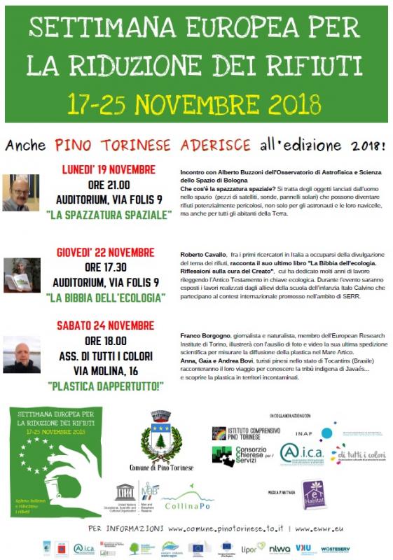 Il comune di Pino Torinese anche quest’anno aderisce alla Settimana europea per la riduzione dei rifiuti (S.E.R.R.), che nella sua decima edizione si occupa delle problematiche ricollegate ai rifiuti pericolosi, per l’ambiente e per l’uomo.