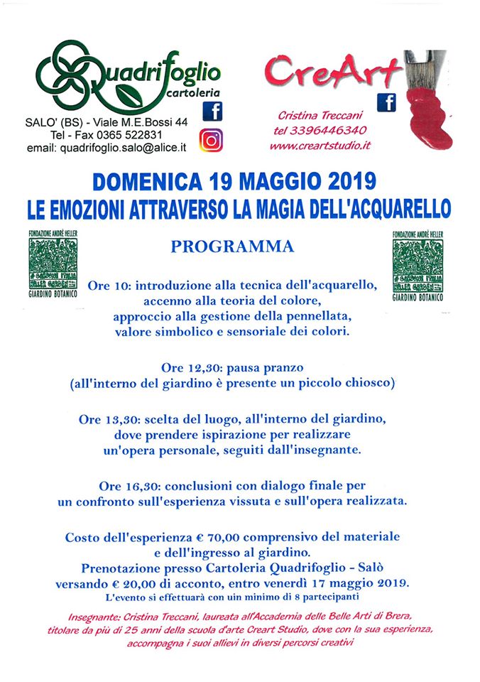 Costo € 70,00, comprensivo del materiale e dell'ingresso al Giardino