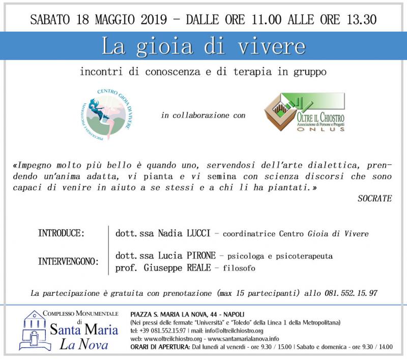Il Centro Gioia di Vivere in collaborazione con l’Associazione Oltre il Chiostro onlus presenta: