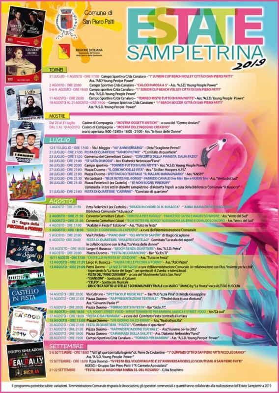 A San Piero Patti in provincia di Messina si svolge nei giorni dal 31 Luglio al 22 Settembre la nuova edizione di Estate Sampietrina.