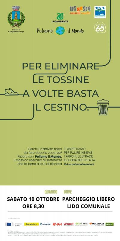 CASTIGLIONE DEL LAGO – Per il terzo anno consecutivo, Castiglione del Lago aderisce a ‘Puliamo il Mondo 2020’, manifestazione di Legambiente che si svolge sabato 10 ottobre in tutta Italia. L’Amministrazione Comunale, su iniziativa dell’associazione “Quelli del 65”, da sempre sensibile e attiva sulle questioni ambientali, ha aderito all’edizione 2020 dopo il grande successo del 2018 e 2019, con centinaia di partecipanti di tutte le età. Confermate anche la collaborazione con TSA (Trasimeno Servizi Ambientali) e la partecipazione dell'Istituto Omnicomprensivo Rosselli-Rasetti, che veicola così un importante messaggio educativo per le nuove generazioni.