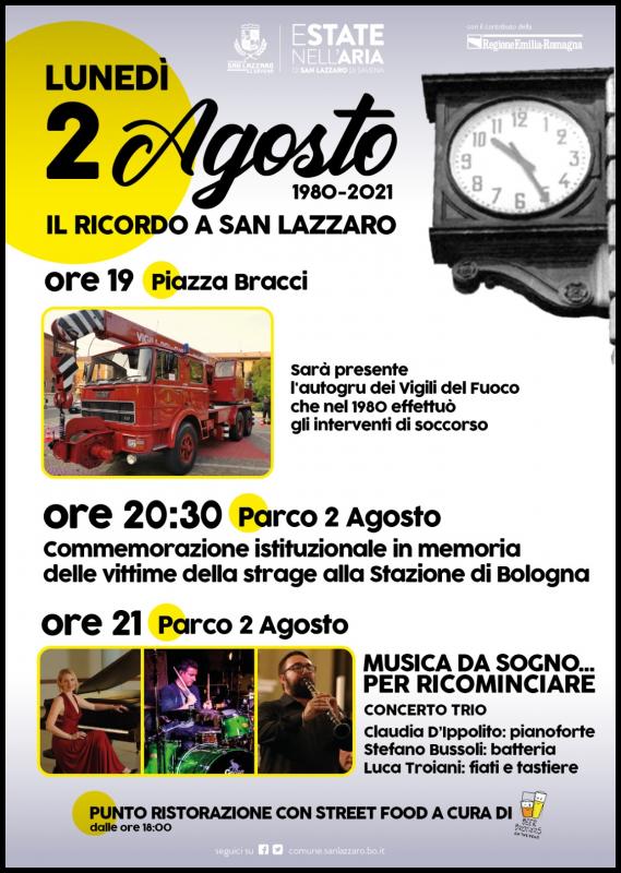 A San Lazzaro di Savena in provincia di Bologna si svolge nella giornata di Lunedì 02 Agosto 2021 la manifestazione Estate nell'Aria a San Lazzaro di Savena - Il Ricordo a San Lazzaro.