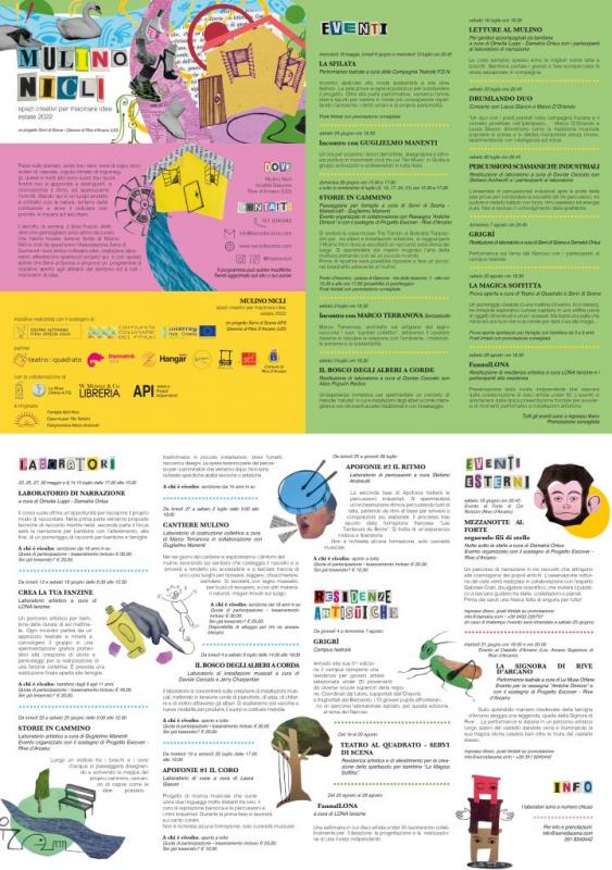 IL MULINO NICLI - Passi sullo sterrato, vento tra i rami, canto dei cigni, scrosciare di cascata, cigolio ritmato di ingranaggi, questi e molti altri sono suoni tra i suoni finché non si apprende a distinguerli, a riconoscerne il ritmo, ad apprezzarne l’unicità. Stando qui in un luogo protetto a contatto con la natura, lontano dalla confusione e dove il cellulare non prende, si impara ad ascoltare. L’ascolto, la semina, il lieve fruscio delle idee che germogliano sono attimi da curare che hanno trovato terreno fertile al Mulino Nicli (Giavons di Rive d’Arcano) e così da dal 2022 l’Associazione Servi di Scena e i suoi amici coltivano idee, realizzano laboratori, allestiscono spettacoli proprio qui: è con questo spirito che Servi di Scena vi propone un programma di iniziative aperto agli abitanti del territorio ed a tutti i macinatori di idee.