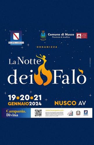 La Pro Loco "Nusco Balcone Dell' Irpinia", con il patrocinio del Comune di Nusco, vi invita all'edizione 2024 de "La Notte Dei Falò", che si svolgera' nei giorni Venerdi 19, Sabato 20, Domenica 21 Gennaio 2024.