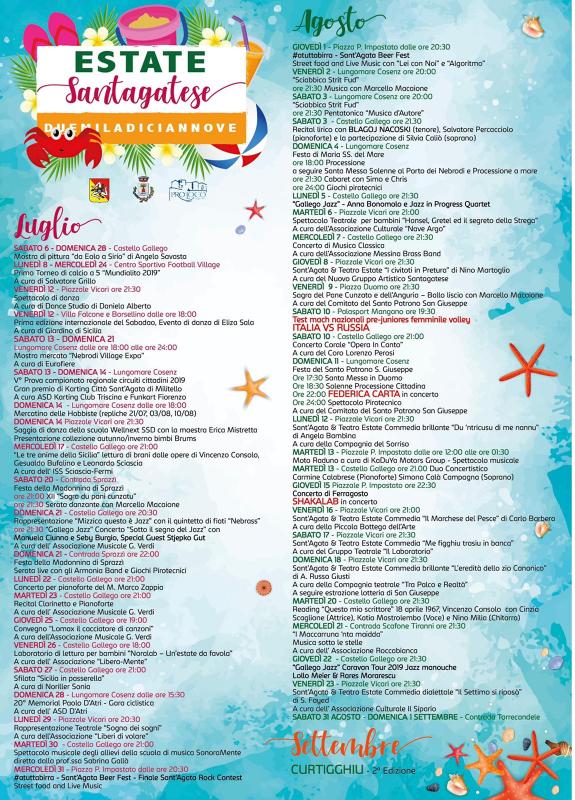 Dal 13 luglio al 26 agosto 2018 si svolgono gli eventi dell'Estate Santagatese.