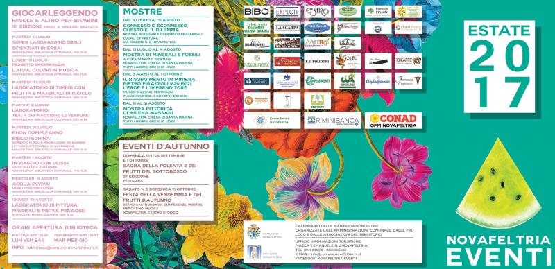 E...state insieme a Novafeltria (RN) prevede eventi che si protraggono fino all'autunno, con appuntamenti dall'8 luglio fino al 15 ottobre 2017.