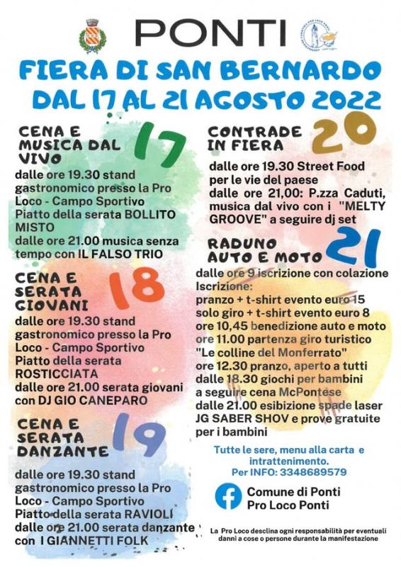 a Ponti in provincia di Alessandria Appuntamento con la tradizionale Fiera di San Bernardo dal 17 al 21 Agosto 2022