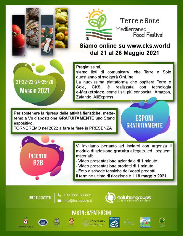 L’obiettivo di TERRE E SOLE Il Mediterraneo Food Festival è la promozione e la valorizzazione dei prodotti dell’Agro-Alimentare e viti-vinicoli d’eccellenza Italiana su un mercato sempre più in ascesa del turistico-ricettivo.