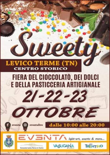 Nel Centro Storico di Levico Terme in provincia di Trento si svolge nei giorni 21, 22, 23 Ottobre 2022, dalle ore 10.00 alle ore 20.00, la Fiera del Cioccolato, dei Dolci e della Pasticceria Artigianale "Sweety".
