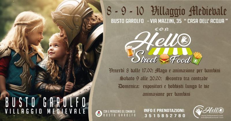 In occasione della festa di primavera in programma a Busto Garolfo quel week end, Hello Eventi organizza uno street food con Villaggio Medievale, scontro tra contrade, animazione per bambini e molto altro.