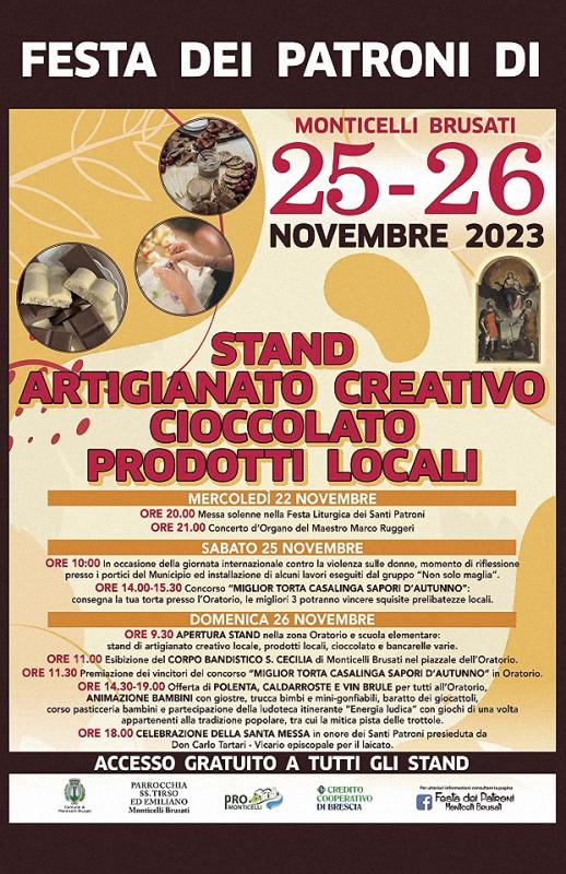 A Monticelli Brusati in provincia di Brescia si svolgono nei giorni 22, 25 e 26 Novembre 2023 i Festeggiamenti in Onore dei Santi Patroni.