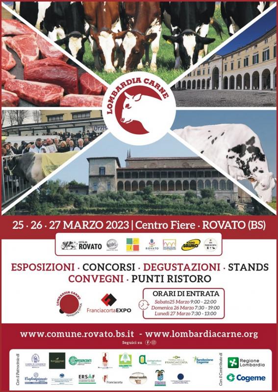 Nei giorni 25, 26 e 27 Marzo 2023 a Rovato (BS), presso il Centro Fiere Franciacorta - Via Martinengo, si svolgerà la 132a Edizione della Manifestazione Fieristica "Lombardia Carne".