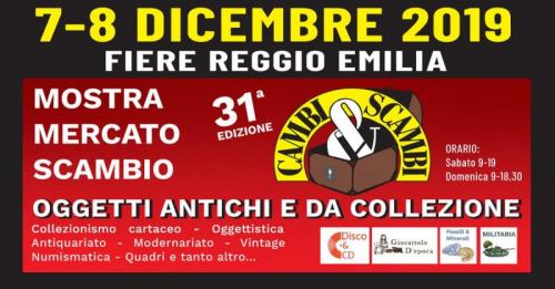 Sabato 7 e Domenica 8 Dicembre 2019 a Reggio Emilia: Cambi e Scambi. Ritorna il grande appuntamento dedicato al mondo del collezionismo.