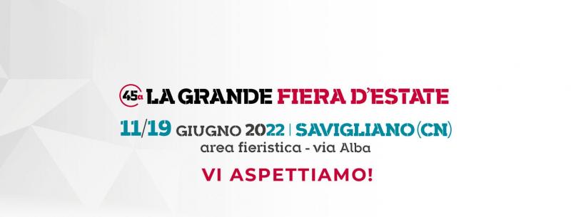 L'dizione 2022 della Grande Fiera D'estate a Savigliano , La più grande fiera commerciale del nord ovest, a ingresso libero, si svolge a Savigliano (Cn) dal 11 al 19 giugno 2022, con 800 stand tra i quali passeggiare e fare acquisti.