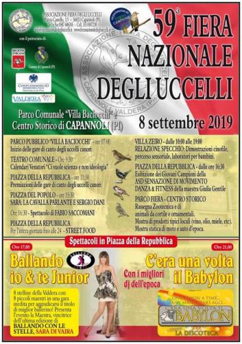 A Capannoli Valdera in provincia di Pisa si svolge nella giornata di Domenica 08 Settembre 2019 la 59a edizione della Fiera degli Uccelli.