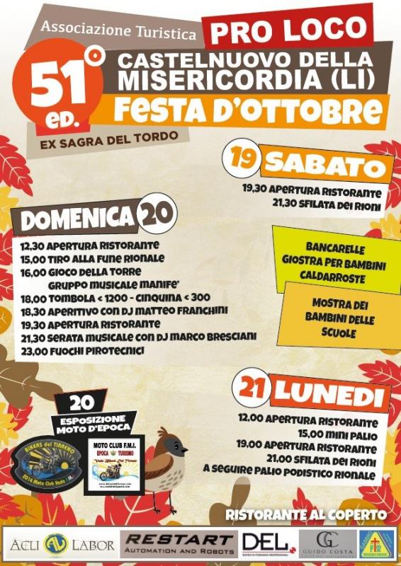 Nei giorni 19 - 20 - 21 ottobre 2019 si terrà a Castelnuovo della Misericordia (LI) in concomitanza con la tradizionale Fiera Paesana
