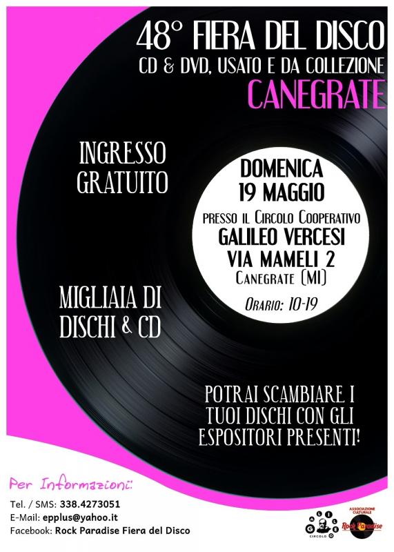 Domenica 19 Maggio a CANEGRATE ci sarà la 48^ FIERA DEL DISCO