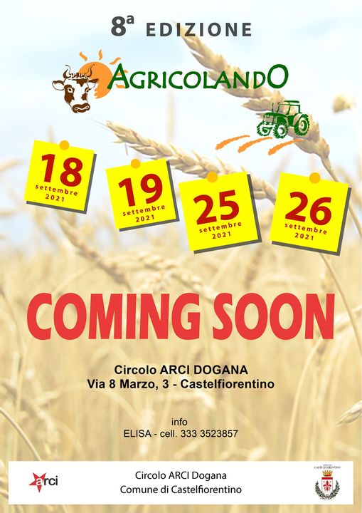 Agricolando Il mondo dell'agricoltura in festa alla Dogana di Castelfiorentino dal 18 al 19 e il 25 e 26 settembre 2021.