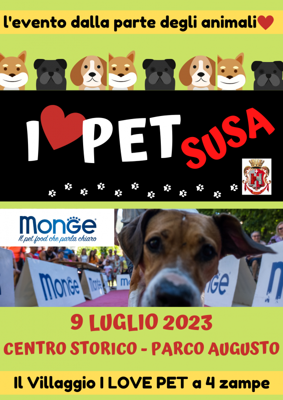 Ringraziamo la Città di Susa, “Pet Friendly” per confermare la 2a edizione di I LOVE PET, domenica 9 Luglio 2023, che si svolgerà nel Centro Storico da Piazza San Giusto, Piazza Savoia e Parco Augusto, al fine di trasmettere la nostra filosofia di rispetto e collaborazione nei confronti di tutti gli animali.