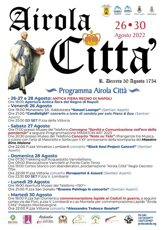 In data 30 Agosto 1754, Re Carlo di Borbone con decreto regio concesse ad Airola tale Titolo.
