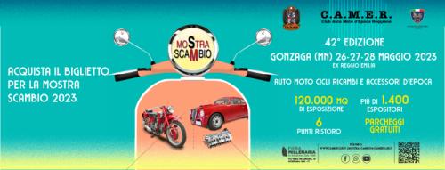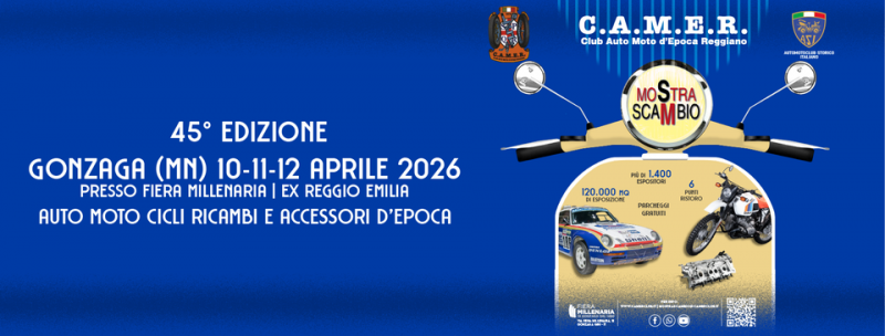 soci e appassionati di moto e auto d'epoca ritroveranno la Mostra Scambio C.A.M.E.R. con la consueta amplissima offerta e 1.400 espositori da tutta Europa, ma nella location di Gonzaga, in provincia di Mantova.